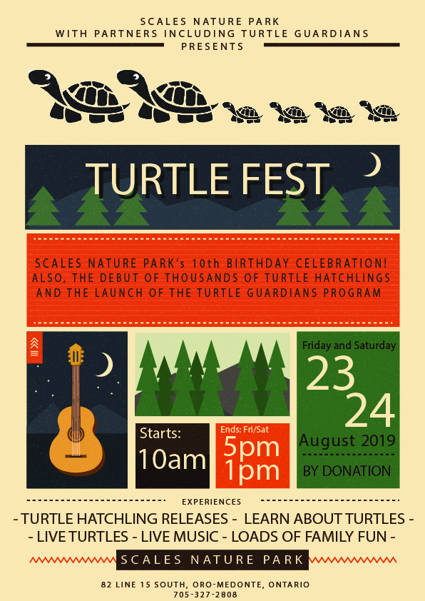 Join us for the first annual turtle fest at Scales Nature Park in Orillia. A time to celebrate the launch of the Turtle Guardians program and the 10th birthday of Scales Nature Park! Help in the release of turtle hatchlings. This year, our partners at Scales Nature Park have incubated more than 11,000 turtle eggs.