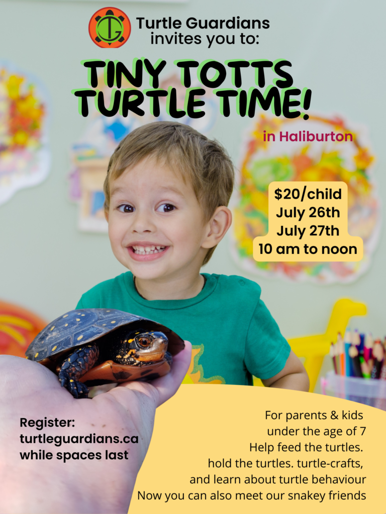 For parents and children under the age of 7. Help feed the turtles. Do some turtle-y cool crafts. Hold and touch the turtles. Learn about turtle behaviour.
