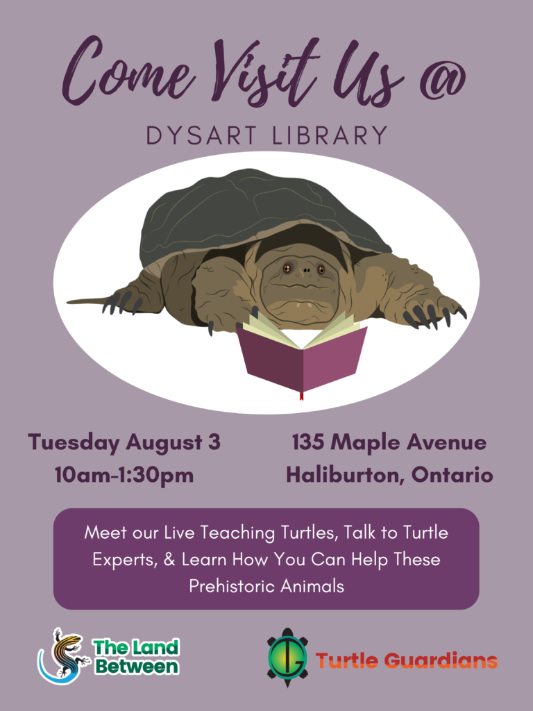 Meet our teaching turtles and learn about these amazing animals. Grace and Sydney, our Turtle Guardian staff, will teach you how to help a snapping turtle across a road, how to tell the difference between Ontario’s 8 species of turtles, and all about turtle biology. These are live turtle events and outside at our local libraries to ensure social distancing is in place. Please bring your facemask and hand sanitzer too! See you there!