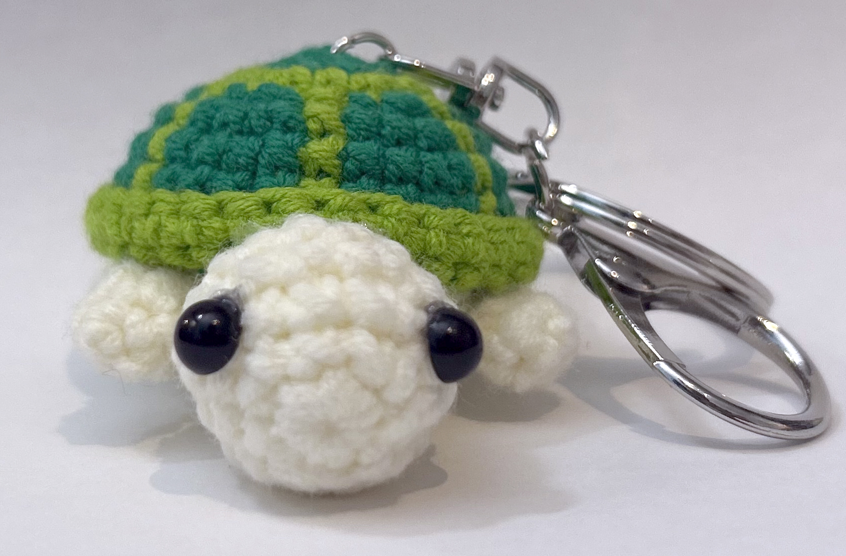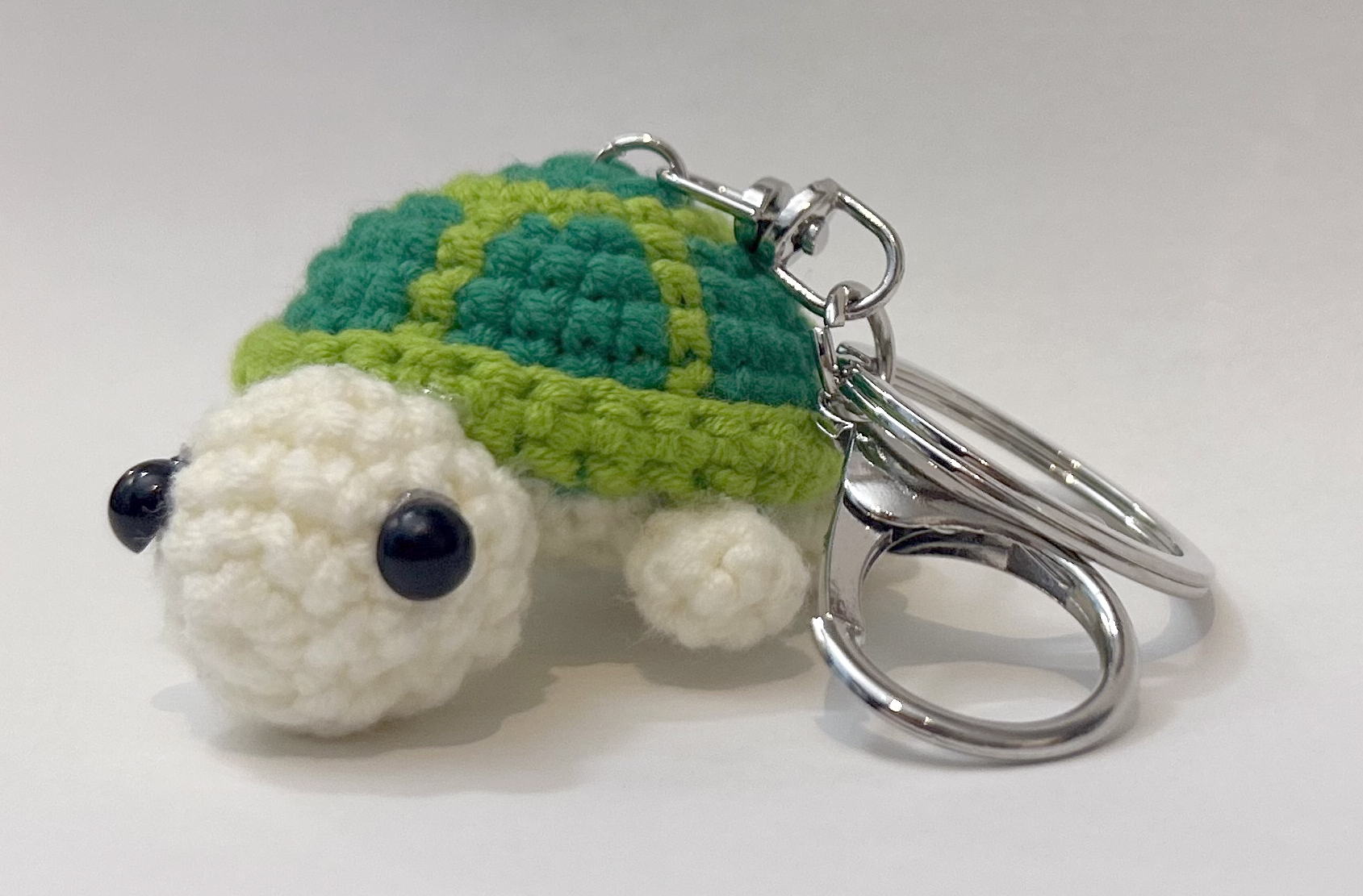 Adorable crochet turtle keychain, perfect addition to add some character to your keys or backpack!
