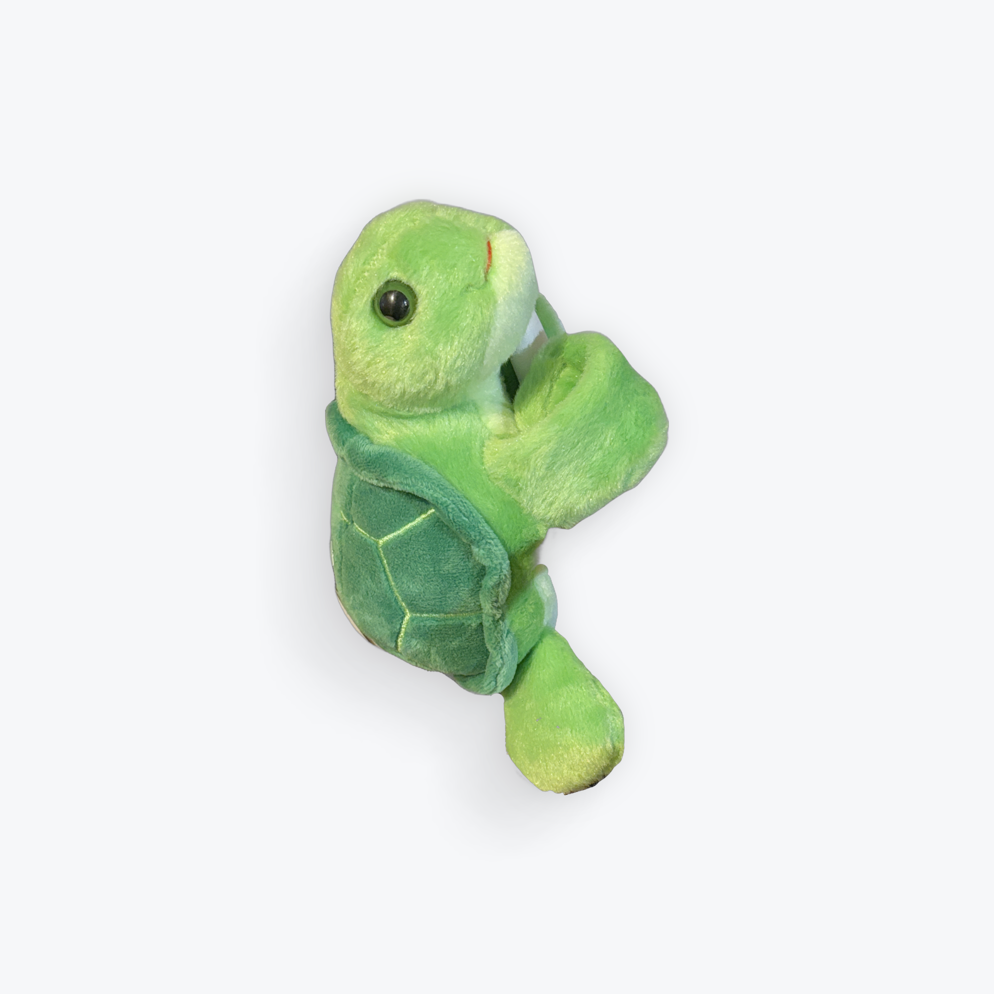 This turtle snap bracelet doubles as a stuffy, and an accessory. Lots of snapping fun!